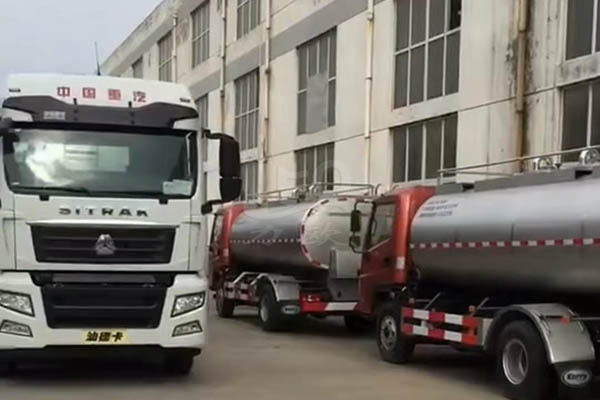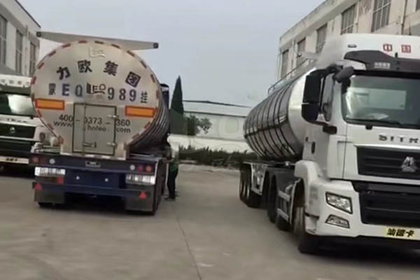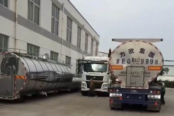 3臺半掛式奶罐運(yùn)輸車發(fā)車現(xiàn)場